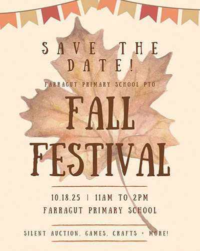 “All are welcome (to the festival),” said Copinger, who added people do not have to have children enrolled in the school to attend. “We’re very excited. Farragut Primary School PTO is hard at work to make an amazing event for everyone.”