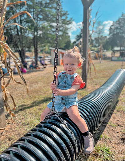 “We offer over 25 fun farm attractions, including barrel train rides, horse shoes, disc golf, acres of playground fun, photo opportunities, farm animals and much more,” said Patricia, noting that her favorite part of operating the farm is seeing families join together. “We love opening the farm up for families to experience real farm life and make memories together. It’s an amazing feeling!”