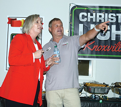 “We’re doing this because Christmas Lights Knoxville is celebrating a milestone,” FWKCC president/CEO Julie Blaylock said. She pointed out the accent lights on the exterior of the YMCA building, which were provided by Christmas Lights Knoxville.