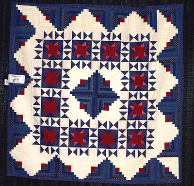 Ratliff’s quilt, “Vintage Tied-Tie Quilt,” was “made by my grandmother, possibly in the 1940s,” Ratliff stated in the program. “The center tie has the initial ‘B’ for her last name and my maiden name ‘Blanc.’ The silk ties are ‘crazy’ quilted, and it’s tied with yarn to secure the layers.”