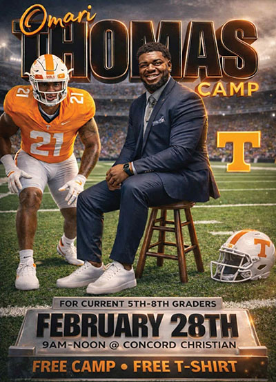 Former Vols defensive lineman Omari Thomas will be holding a camp from 9 a.m. to noon this Saturday at Concord Christian Academy.