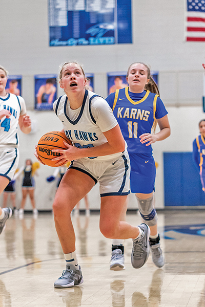 Hardin Valley (5-6) continued to smother Karns’ offense in the second quarter, forcing tough shots and limiting second-chance opportunities. The Lady Hawks steadily extended their lead and went into halftime ahead 27-8.