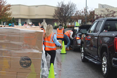 total guests of 1,187, Stone said. “During the November distribution we purchased 6,180 pounds of non-perishable items from Second Harvest, over 1,200 pounds of protein selections from local grocery stores — ground chuck, chicken breast, hams — 300 dozen eggs and several holiday