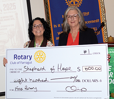Then, ROF president Candace Viox presented Shepherd of Hope Food Pantry executive director Renee Stone with $800 the club raised at its Rotary Reserve Bourbon and Wine Affair fundraiser Oct. 19.