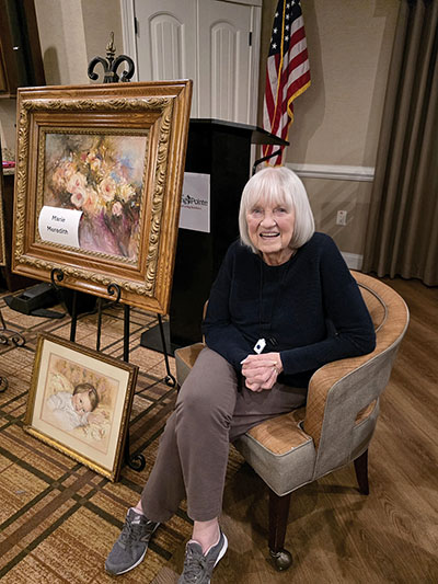 Art was a central highlight throughout the room. Guests admired Marie Meredith’s watercolor and oil paintings, noting the remarkable detail in each piece. Another memorable moment came when Betty Brannum shared her love of clogging, giving attendees a joyful glimpse into a hobby rooted in rhythm and tradition.