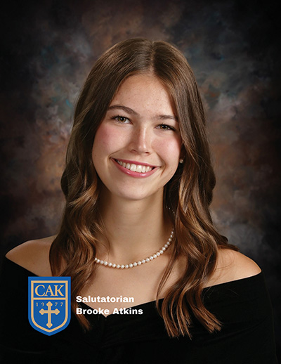 “Brooke Atkins has demonstrated exemplary leadership, academic excellence and a deep commitment to serving others throughout her four years at Christian Academy of Knoxville,” Margene stated. “An AP Scholar with Distinction, Brooke is also a two-time recipient of the ACIS Distinguished Leadership Award and the ALA Girls State Samsung Auxiliary Award.