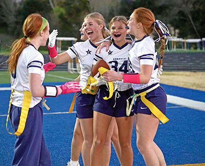 The victory marked a 1-0 start in district play for Farragut in its first TSSAA-sanctioned season of girls flag football, as FHS forced OT after trailing 12-6 with 55 seconds left in regulation.
