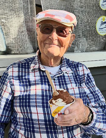 ice cream. He also enjoyed candy jelly beans, See’s chocolates, and black licorice. He loved God and the United States of America, and he loved wearing his large collection of hats. His favorite song was “The Old Rugged Cross,” and old hymns were his favorite to listen to.
